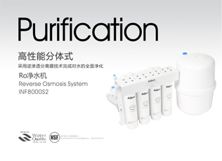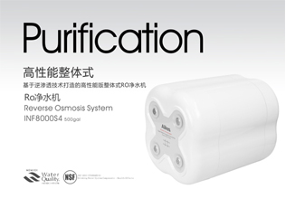 INF8000S4型净水机是基于逆渗透技术打造的高性能版平台,使用分离断电的开启方式,便于更换专属的快插式过滤单元……