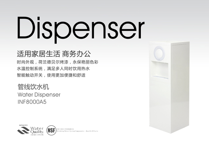Alikes管线机可配合终端净水机使用,也可以利用自带的滤芯(选配)进行水处理净化。净化后的水经PE输水管连接到机内的密闭储水罐,通过加热和冷却装置处理成热水、冰水或常温水。管线饮水机作为家居水处理装置中的一种产品,能为别墅、大户型住宅、商务会议以及日常家用提供非常便捷清洁的饮用水。