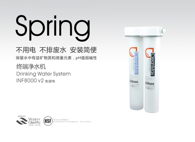 Alikes终端净水机利用市政管道自来水的压力驱动水流,通过独特的滤芯来达到生饮的标准。安装简易,即插即饮。去除水中的泥沙、******、铁锈、悬浮物、有害重金属、余氯异色和异味。不需用电,不产生废水,即用即饮,不需储水罐避免二次污染 , 确保饮水健康。是净水机中的高端产品,适用于咖啡店,水吧商用,别墅、******商务楼、******住宅楼家用。满足高端人群对高品质饮水的需求 。