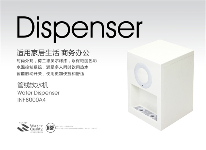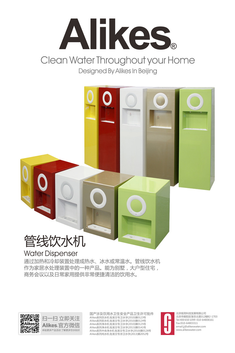 Alikes管线机可配合终端净水机使用,也可以利用自带的滤芯(选配)进行水处理净化。净化后的水经PE输水管连接到机内的密闭储水罐,通过加热和冷却装置处理成热水、冰水或常温水。管线饮水机作为家居水处理装置中的一种产品,能为别墅、大户型住宅、商务会议以及日常家用提供非常便捷清洁的饮用水。